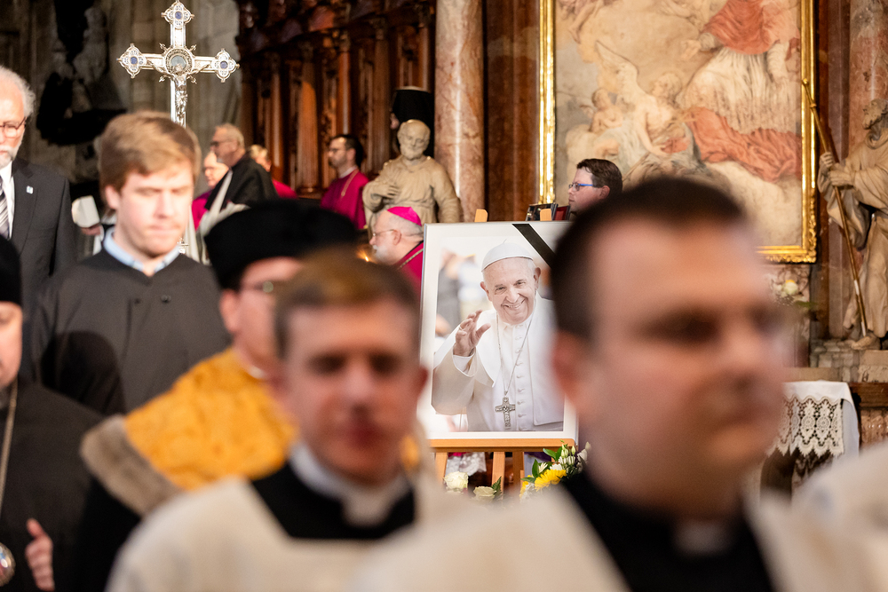 Mit einem "Requiem für seine Heiligkeit Papst Franziskus" nahm Österreich am Montagabend offiziell Abschied vom Papst. Dem Gottesdienst stand der Vorsitzende der Österreichischen Bischofskonferenz, Erzbischof Franz Lackner vor. Mit ihm konzelebrierten die heimischen Bischöfe. Die Politik war an erster Stelle von Bundespräsident Alexander Van der Bellen und Bundeskanzler Christian Stocker vertreten. Zahlreiche Gläubige gaben dem Papst im vollen Dom ebenfalls die letzte Ehre