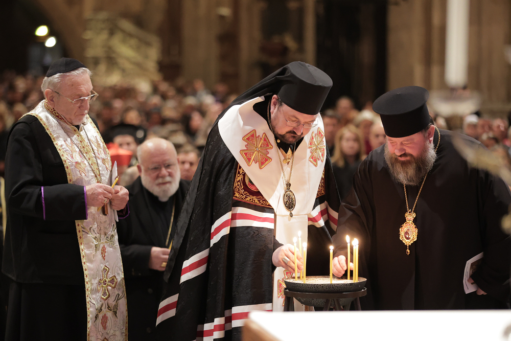 An der Feier haben neben Kardinal Schönborn auch der päpstliche Gesandte in Österreich, Nuntius Erzbischof Pedro Lopez, der evangelische Bischof Michael Chalupka, der armenisch-apostolische Bischof und der Vorsitzende des Ökumenischen Rates der Kirchen in Österreich, Tiran Petrosyan, der griechisch-orthodoxe Metropolit und Vorsitzende der Orthodoxen Bischofskonferenz in Österreich, Arsenios (Kardamakis), sowie Chorepiskopus Emanuel Aydin von der Syrisch-Orthodoxen Kirche und der Wiener Ostkirchen-Generalvikar, der ukrainisch-katholische Geistliche Yurij Kolasa, teilgenommen. Die Orthodoxe Kirche der Ukraine (OKU) war durch Bischof Antoniy (Firley) von Chernihiv und Nizhyn repräsentiert. Ebenfalls aus der Ukraine gekommen war der griechisch-katholische Bischof Petro Holinej von Kolomyia.