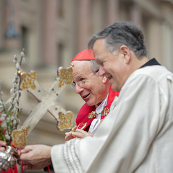 Traditionell werden am Palmsonntag, eine Woche vor Ostern, in der Wiener Innenstadt die Palmkätzchen von Kardinal Christoph Schönborn gesegnet. Die Palme ist ein Symbol des Sieges und steht im Christentum für das ewige Leben. Wir waren mit der Kamera dabei.
